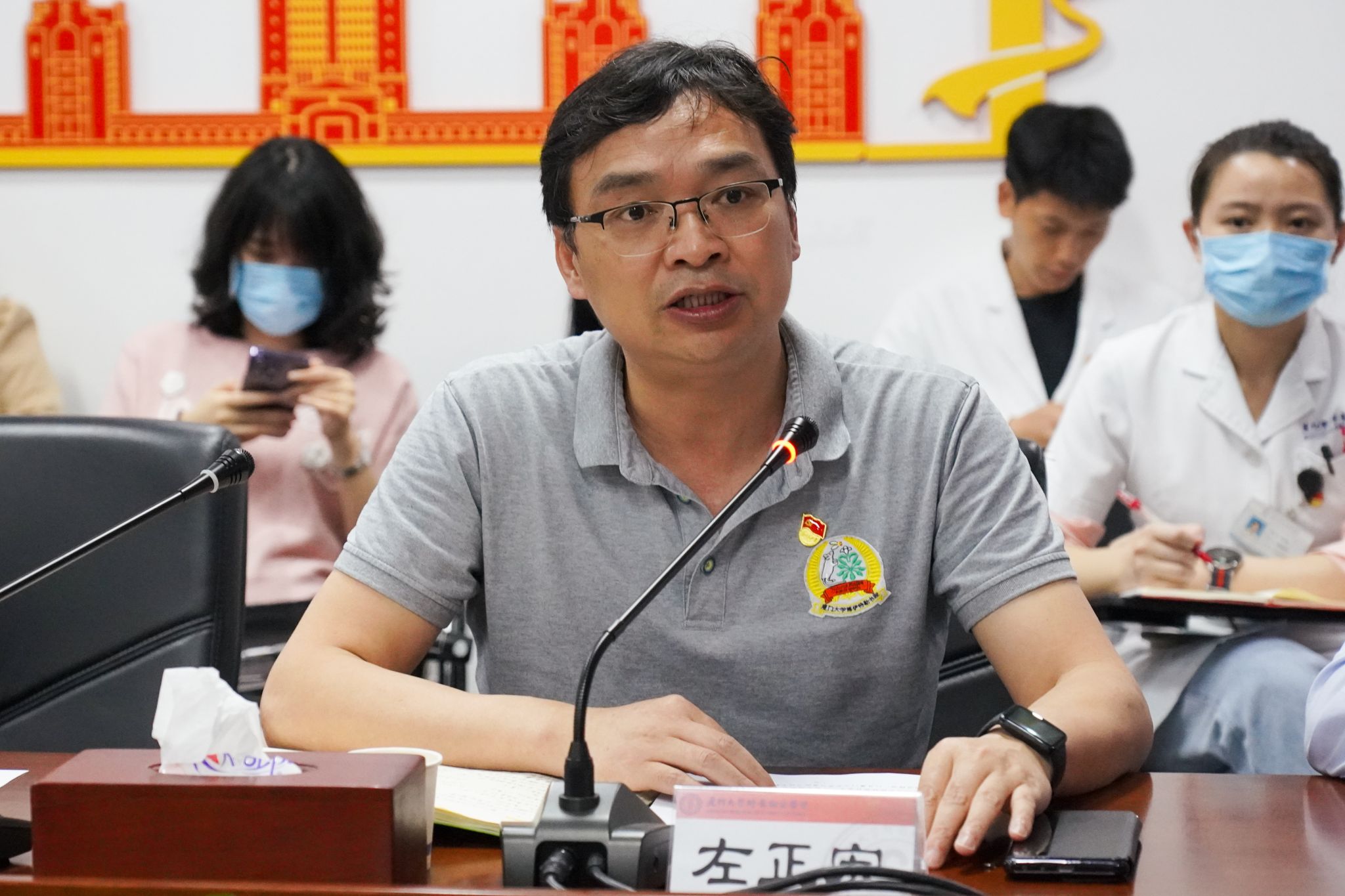 左正宏同志就扎实开展主题教育进行部署。一要深刻认识主题教育的重大意义,坚定拥护“两个确立”,坚决做到“两个维护”,以高度的政治自觉、饱满的政治热情、严肃的政治态度,积极投身主题教育;二要牢牢把握“学思想、强党性、重实践、建新功”的总要求并贯穿主题教育全过程,坚持学思用贯通、知信行统一,着力在学用结合、深化转化上下功夫,深入实施医院“十四五”规划,切实履行公立医院社会责任;三要切实把理论学习、调查研究、推动发展、检视整改、建章立制贯通起来,着力解决理论学习、政治素质、能力本领、担当作为、工作作风、廉洁自律等六个方面的问题,努力在以学铸魂、以学增智、以学正风、以学促干上取得实实在在的成效,推动医院高质量发展。