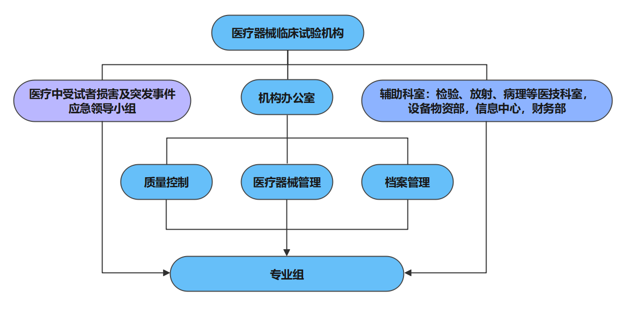 此外,院内检验、放射和病理等医技科室负责受试者的检验检查工作;设备物资部负责试验用仪器设备的校正、维护、保养;信息中心提供临床试验项目的信息化管理支持;财务部负责经费的入账、结算和审计。