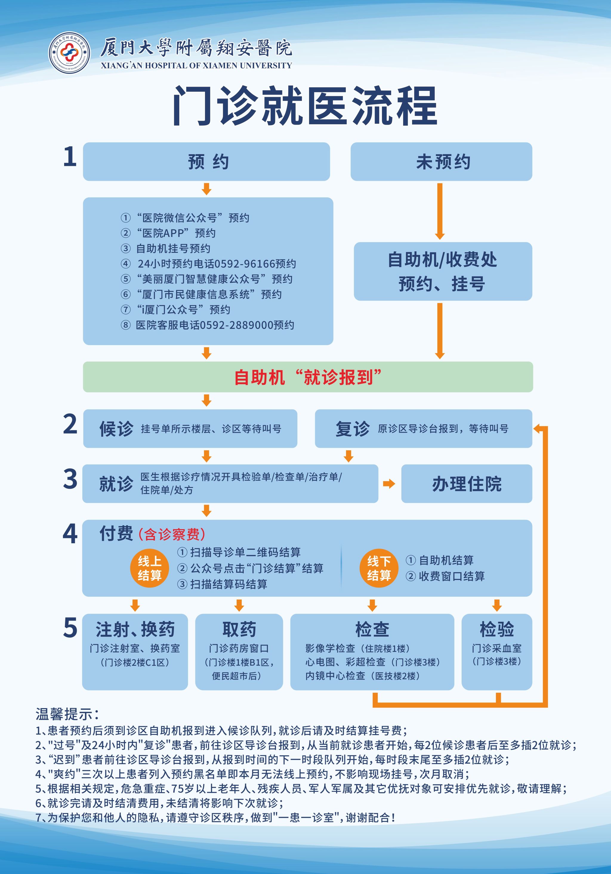 1.“厦门大学医学中心 厦大翔安医院”微信公众号预约